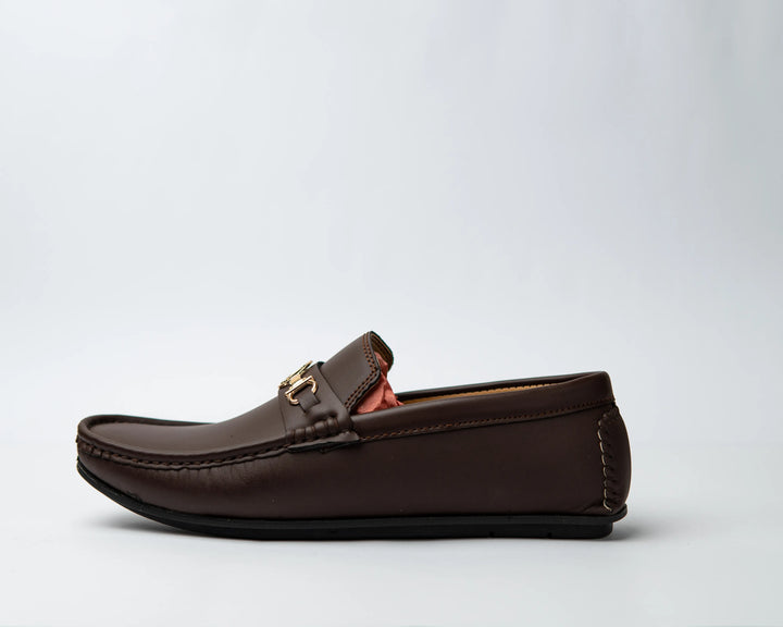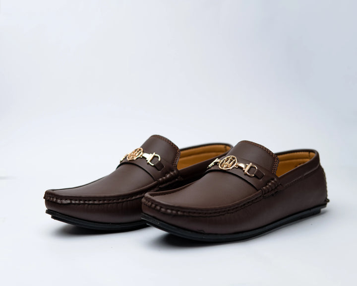 These classic brown loafers feature a sophisticated gold chain detail that adds a touch of elegance and luxury. Crafted from premium leather, they offer both style and comfort. Perfect for dressing up or down, these loafers are a versatile and timeless addition to any wardrobe.